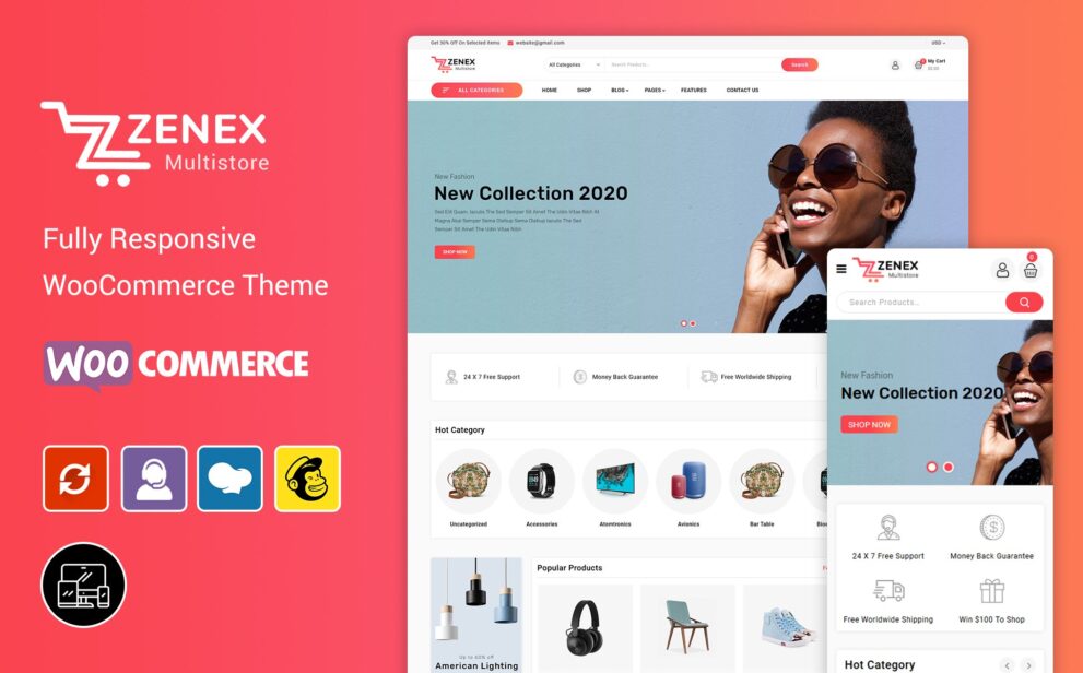 Zenex – eCommerce WooCommerce is the best fashion multipurpose Woocommerce theme. You will get exclusive features such as revolution Slider, WPBakery Page Builder, Mailchimp, client review. The theme integrates Google Web Fonts, offering you a large variety of typefaces to choose from when customizing the theme.A Awesome Look on any device desktop, tablet or phone.